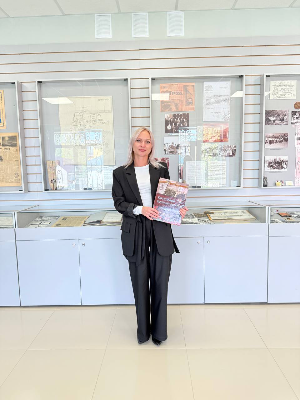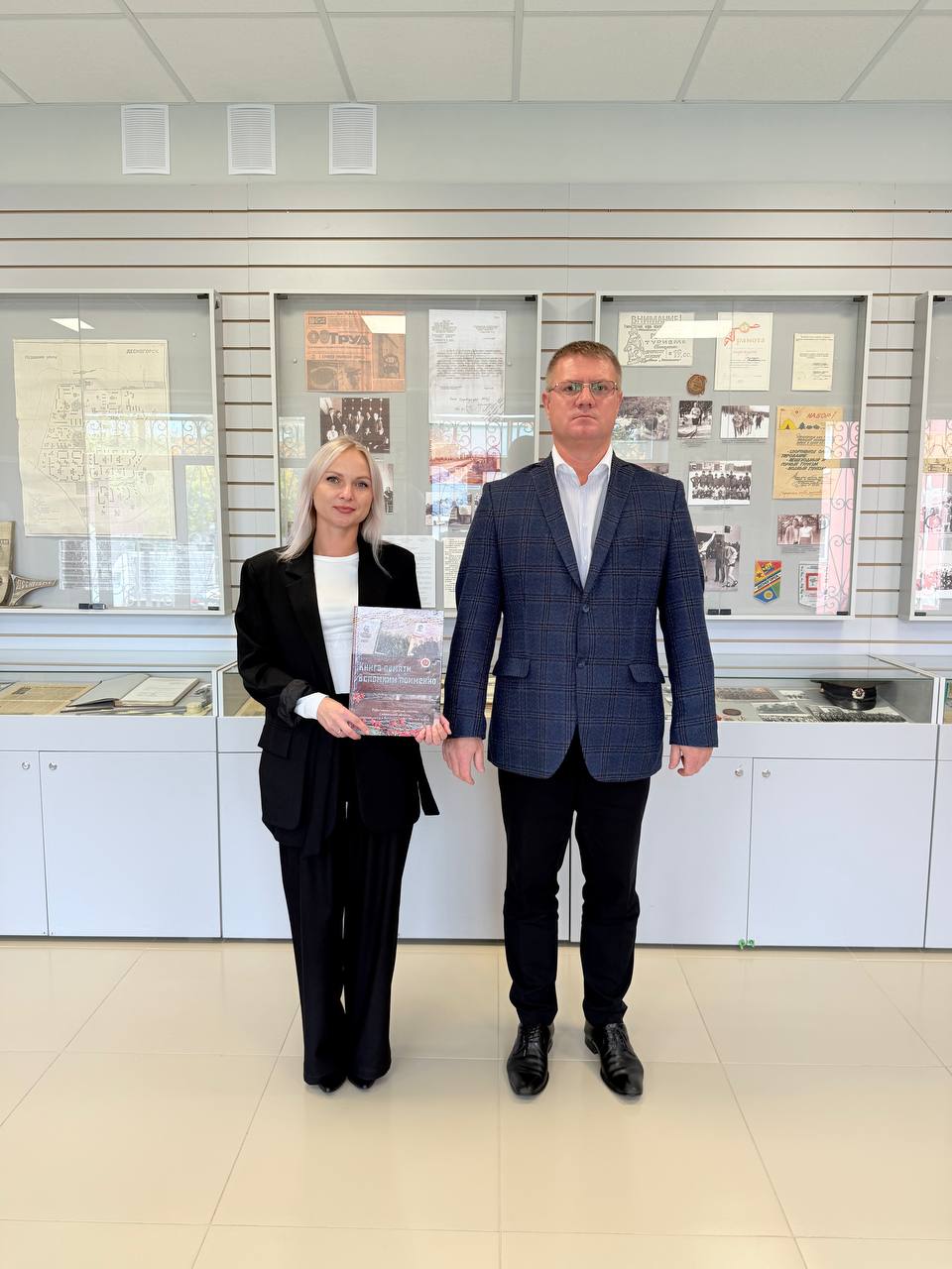 23 сентября 2025 года в Десногорском историко-краеведческом музее состоялась встреча председателя Десногорского городского суда Смоленской области Калинина Д.Д. с исполняющим обязанности директора музея Нестеренко Г.А., в ходе которой Денис Дмитриевич от лица судейского сообщества Смоленской области передал в дар Десногорскому историко-краеведческому музею экземпляр юбилейного издания «Книга памяти. Вспомним поименно», изданную к 80-летию Победы в Великой Отечественной войне 1941-1945 годов, и содержащую в себе истории о судьях и сотрудниках судов Смоленской области, участвовавших в защите нашей родины, об их подвигах и наградах. Галина Алексеевна выразила благодарность судейскому сообществу Смоленской области в лице Дениса Дмитриевича, указав, что данная книга станет достойным дополнением фонда музея.
