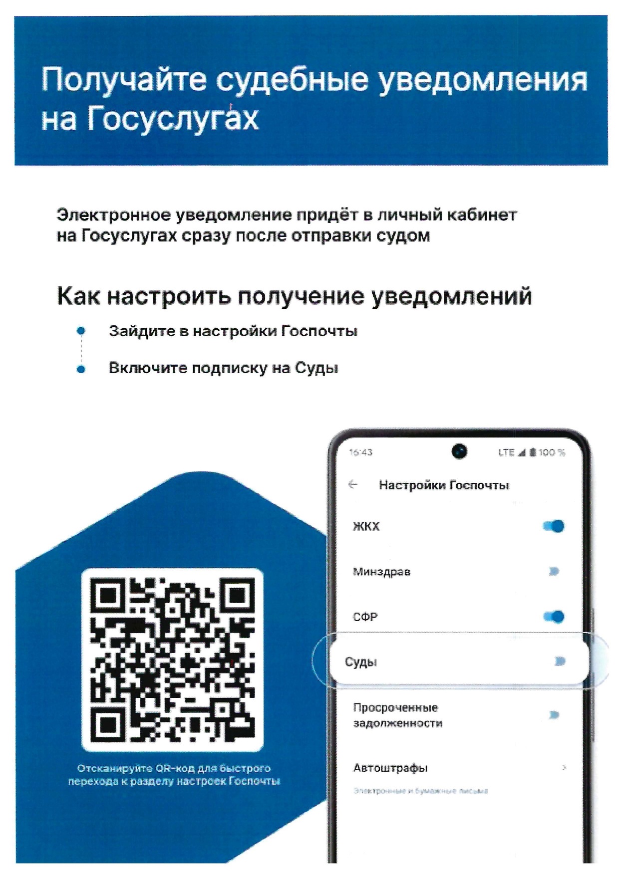 | Получайте судебные уведомления на Госуслугах | версия для печати |